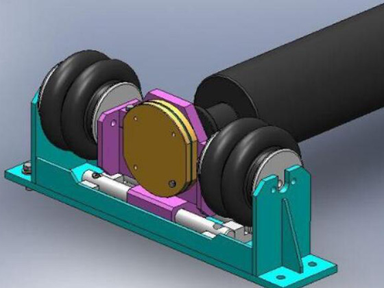 采用气缸或气囊推动纠偏转一定角度来自动纠正滤布的偏移,保证滤布的正常运转。