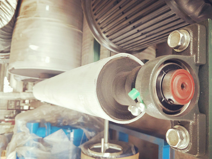 带式真空过滤机物料经过进料斗进入设备,在滤布上铺开,开始进行过滤形成工作,在滤布运行出有效真空区时,需要进行改向从而进入其他关键部位、滤布清洗(喷嘴)、滤布纠偏等,保证设备正常运作时,这时候就需要改向辊对滤布进行改变方向(滤布运行方向),使得滤布按照设备设计方向依次进入,进入好的工作环境。