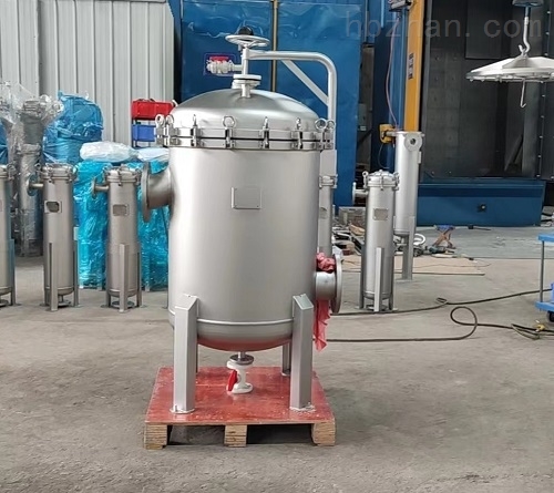 袋式过滤机是一种压力式过滤装置,主要有过滤筒体、过滤筒盖和快开机构、不锈钢滤袋加强网等主要部件组成,滤液由过滤机外壳的旁侧入口管流入滤袋,滤袋本身是装置在加强网篮内,液体渗透过所需要细度等级的滤袋即能获得合格的滤液,杂质颗粒被滤袋拦截。该机更换滤袋十分方便,过滤基本无物料消耗。