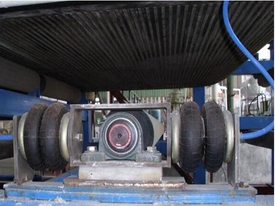 采用气缸或气囊推动纠偏转一定角度来自动纠正滤布的偏移,保证滤布的正常运转。