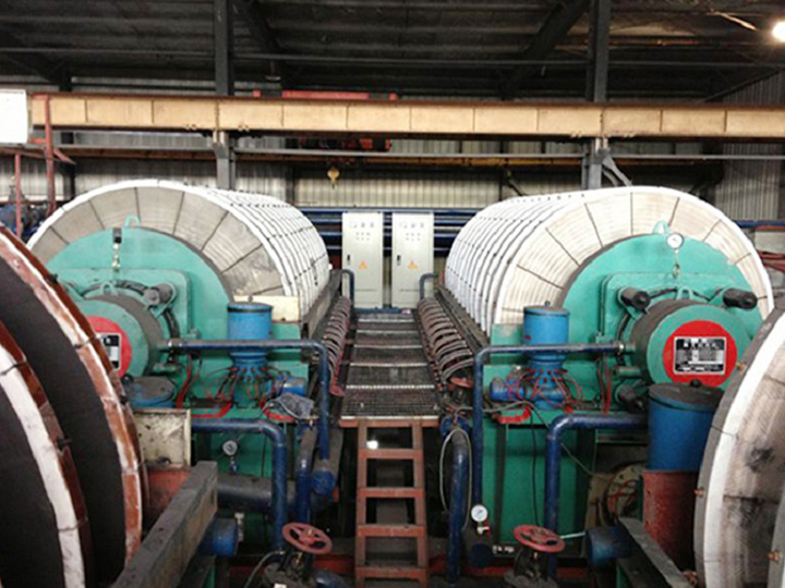 1、虽然圆盘式真空过滤机是连续工作的过滤设备,但对每个过滤板来说,它的工作是间断的,工作中经过过滤、干燥、卸料3个工序。